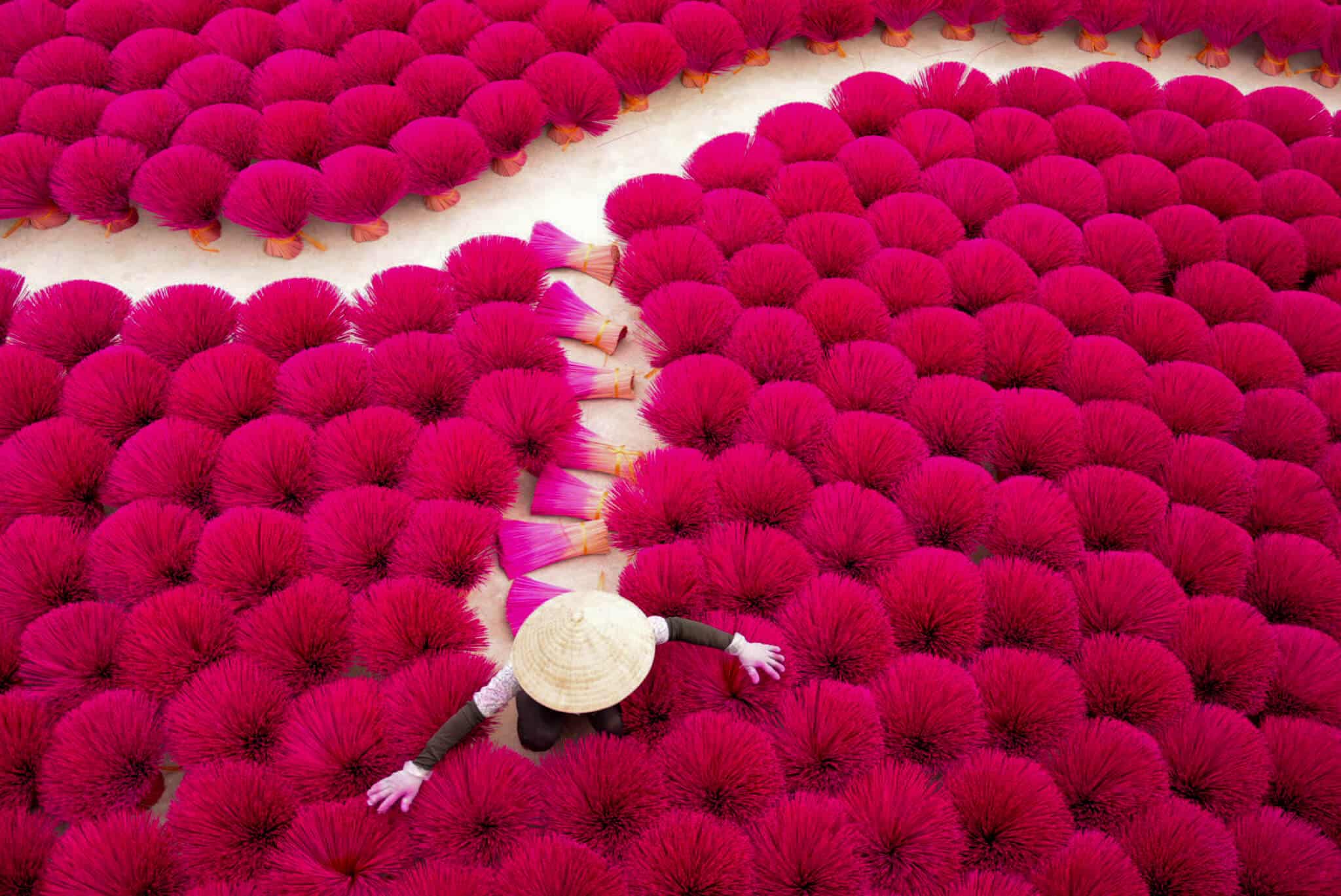 Incense WorkerHanoi A incense worker during her daily activities. The process is totally manual and the incense dries out in the sun, so it will have a fresh scent (Hanoi). Back to Gallery